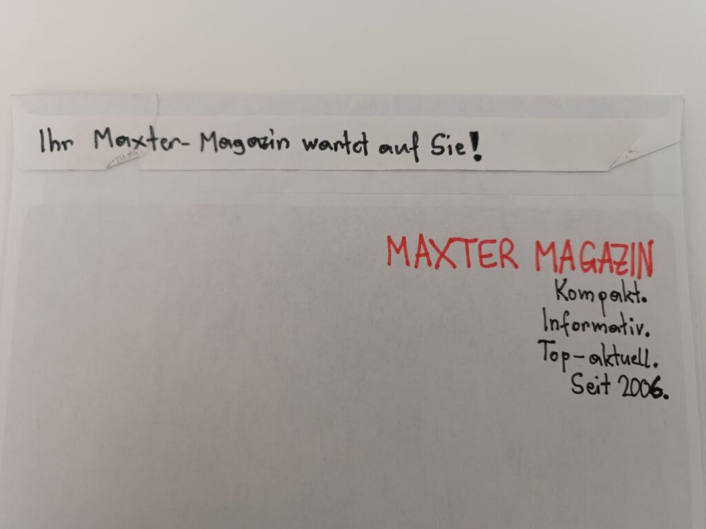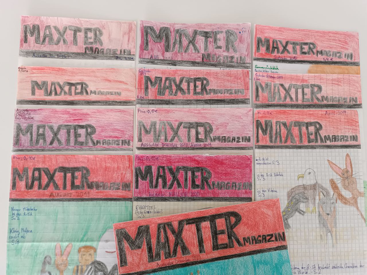 Mit Buntstiften handgezeichnete Bilder – inklusive Titelbild – wurden ergänzt, die Zettel mit Klebeband zu einem Heft zusammengeklebt und auch die Seitennummern wurden in einheitlichem schwarz/rotem Design gestaltet. Schlussendlich erblickte das allererste Maxter Magazin das Licht der Welt: mit Logo in schwarzen Blockbuchstaben auf rotem Grund. Ich liebte als Kind einfach Blockbuchstaben.